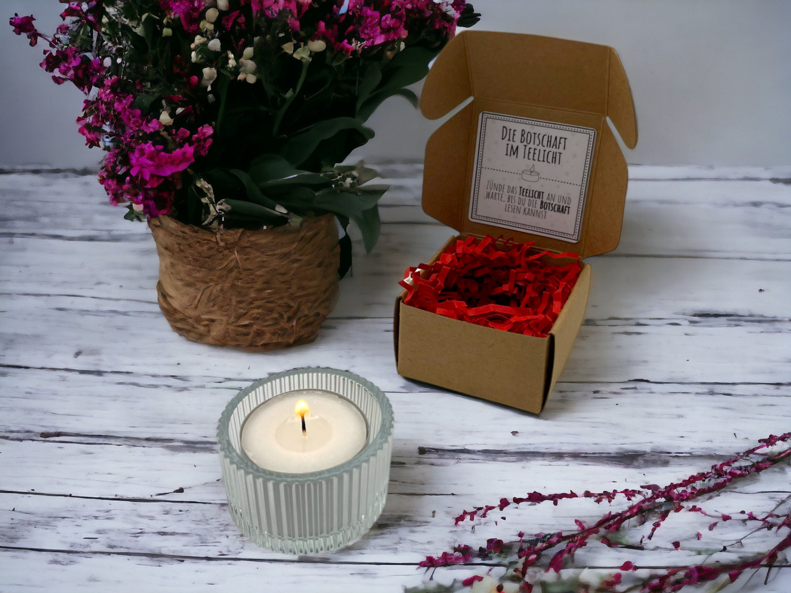 Unser Teelicht mit Botschaft ist das perfekte Geschenk, um deine Liebe, Wertschätzung und Zuneigung zu zeigen. Dieses einzigartige Produkt verbindet... Erfahre mehr Erfahre mehr