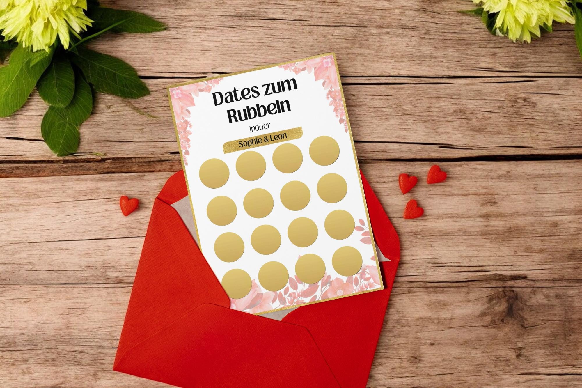 Perfekt als Geschenk zu besonderen Anlässen wie Weihnachten, Geburtstag oder Valentinstag, sind die “Dates zum Rubbeln” ideal für alle, die gemeinsame Momente und Erinnerungen schaffen möchten. Du kannst die Karte ganz einfach mit den Namen von dir und deinem Partner/deiner Partnerin personalisieren, wodurch sie zu einem besonderen und individuellen Geschenk wird.