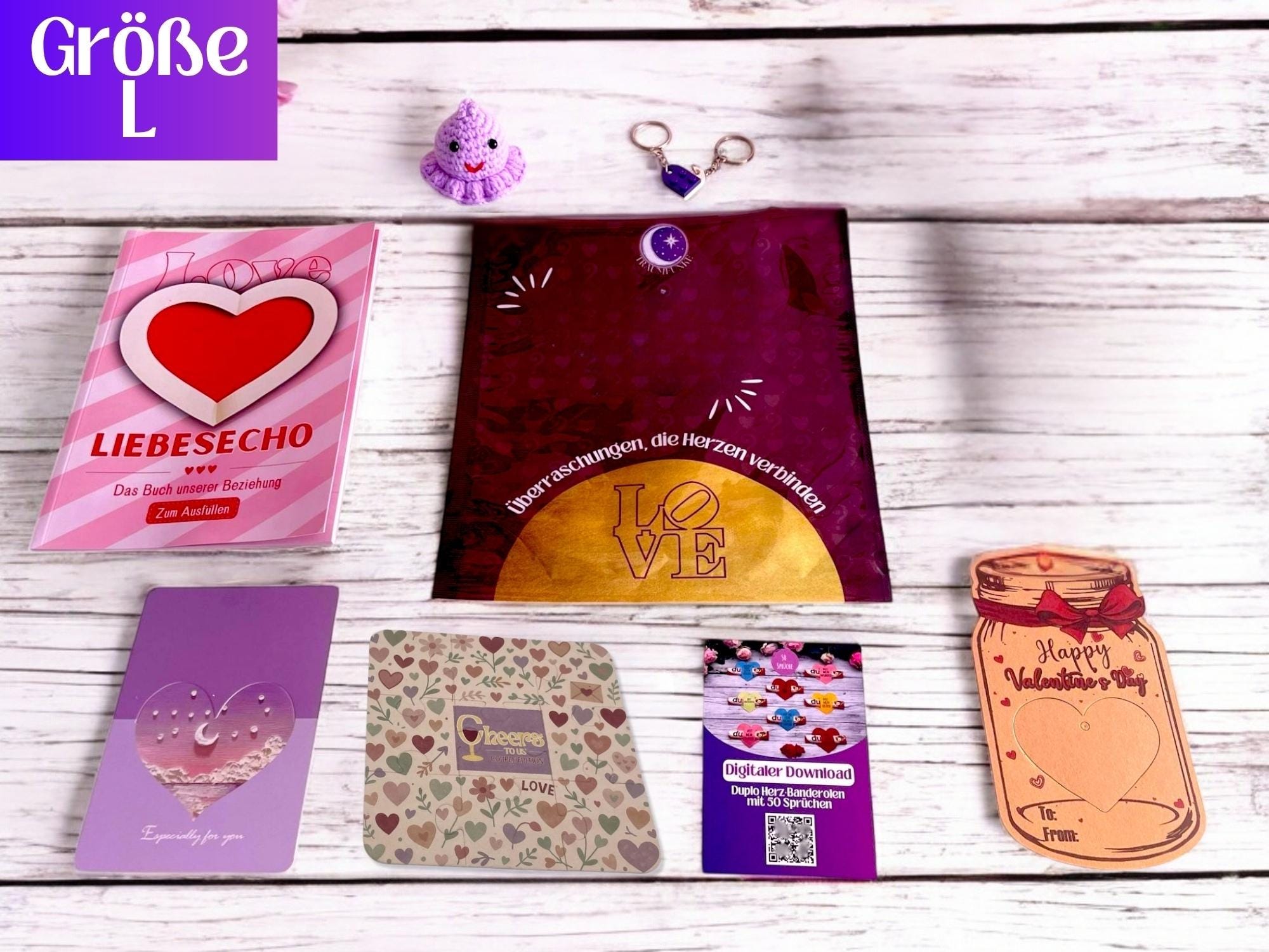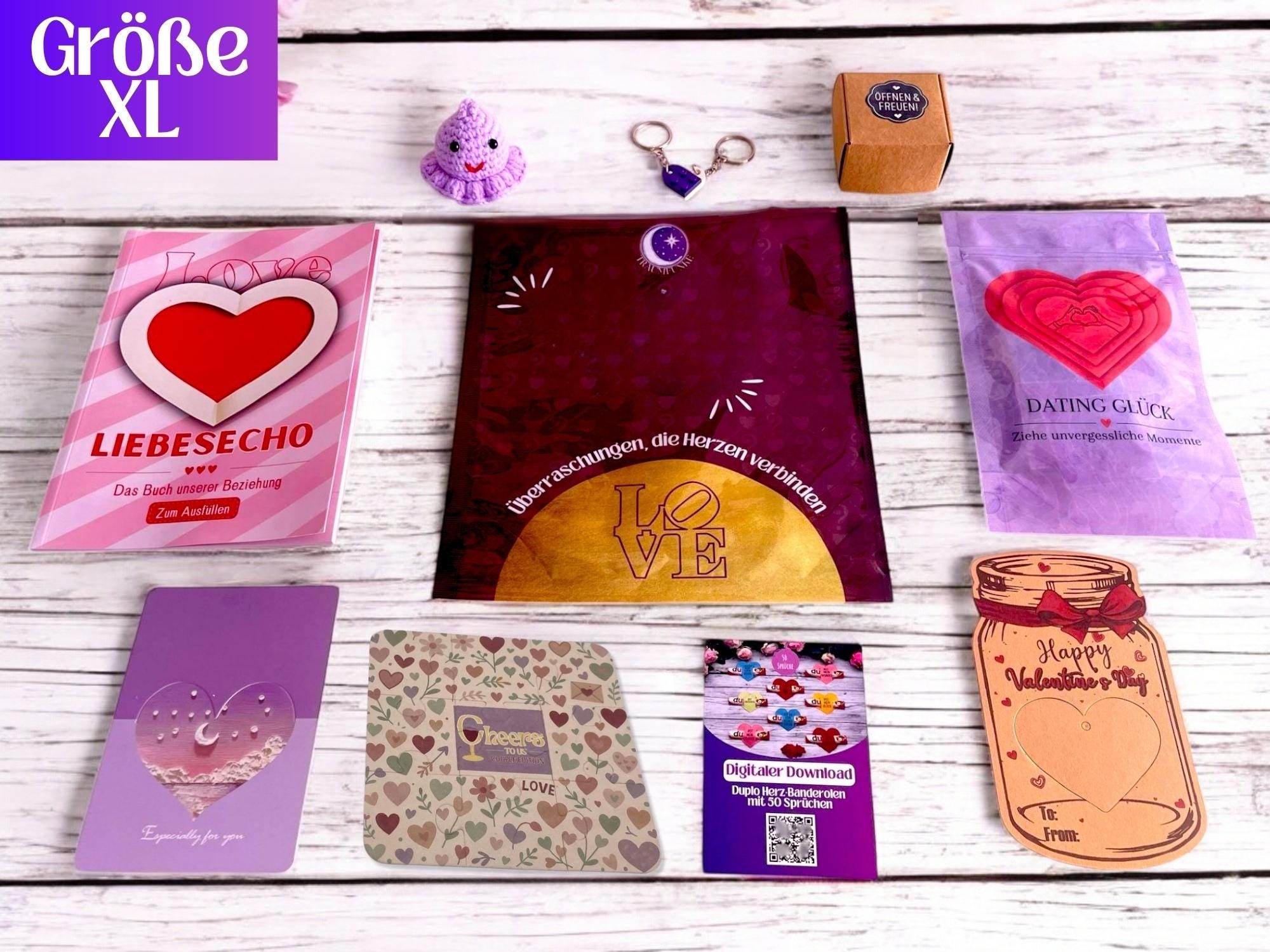 Erhältlich in vier liebevoll zusammengestellten Größen – jede Variante enthält ausgewählte Inhalte, die Romantik, Kreativität und Nähe in den Mittelpunkt stellen: