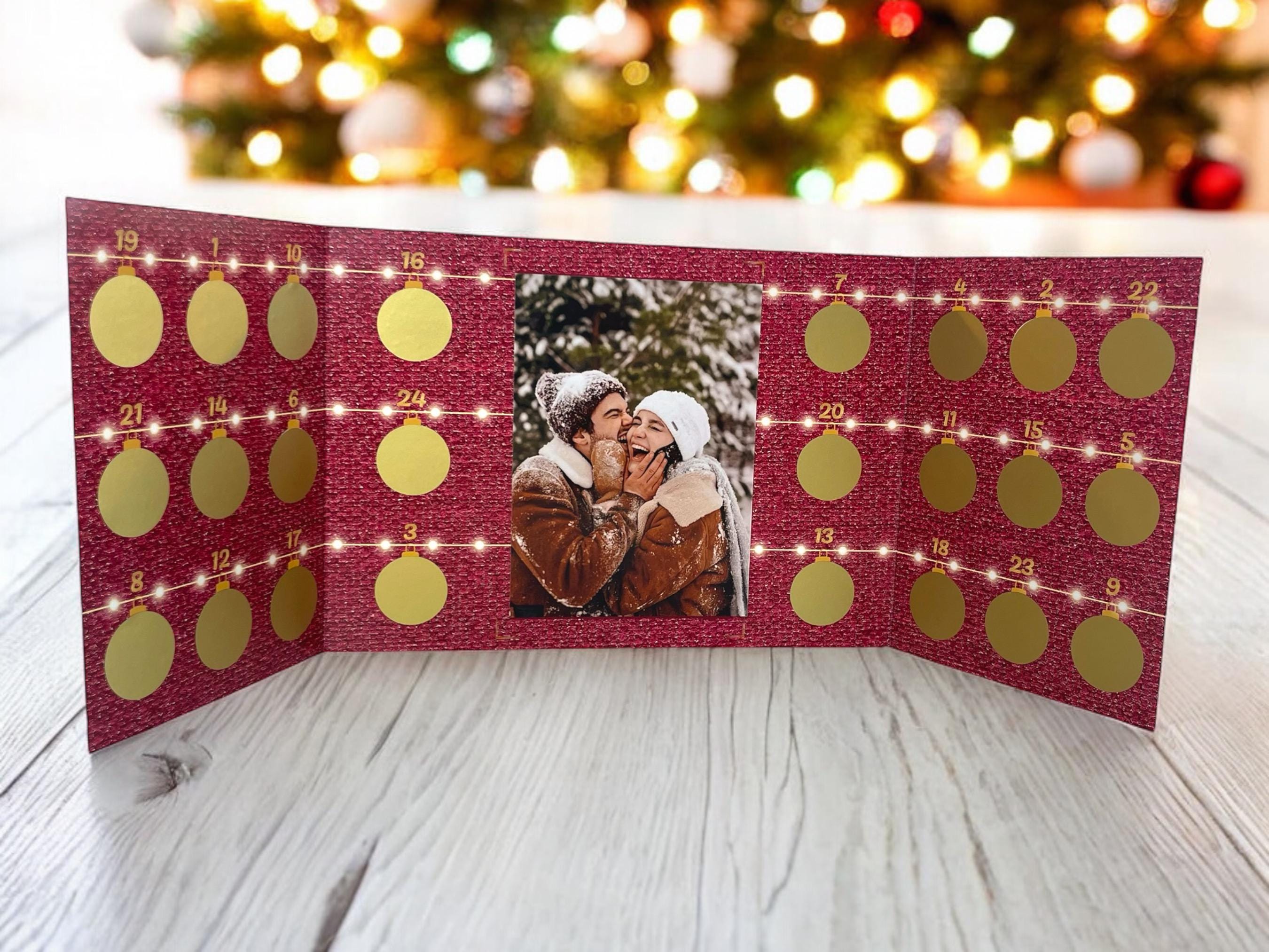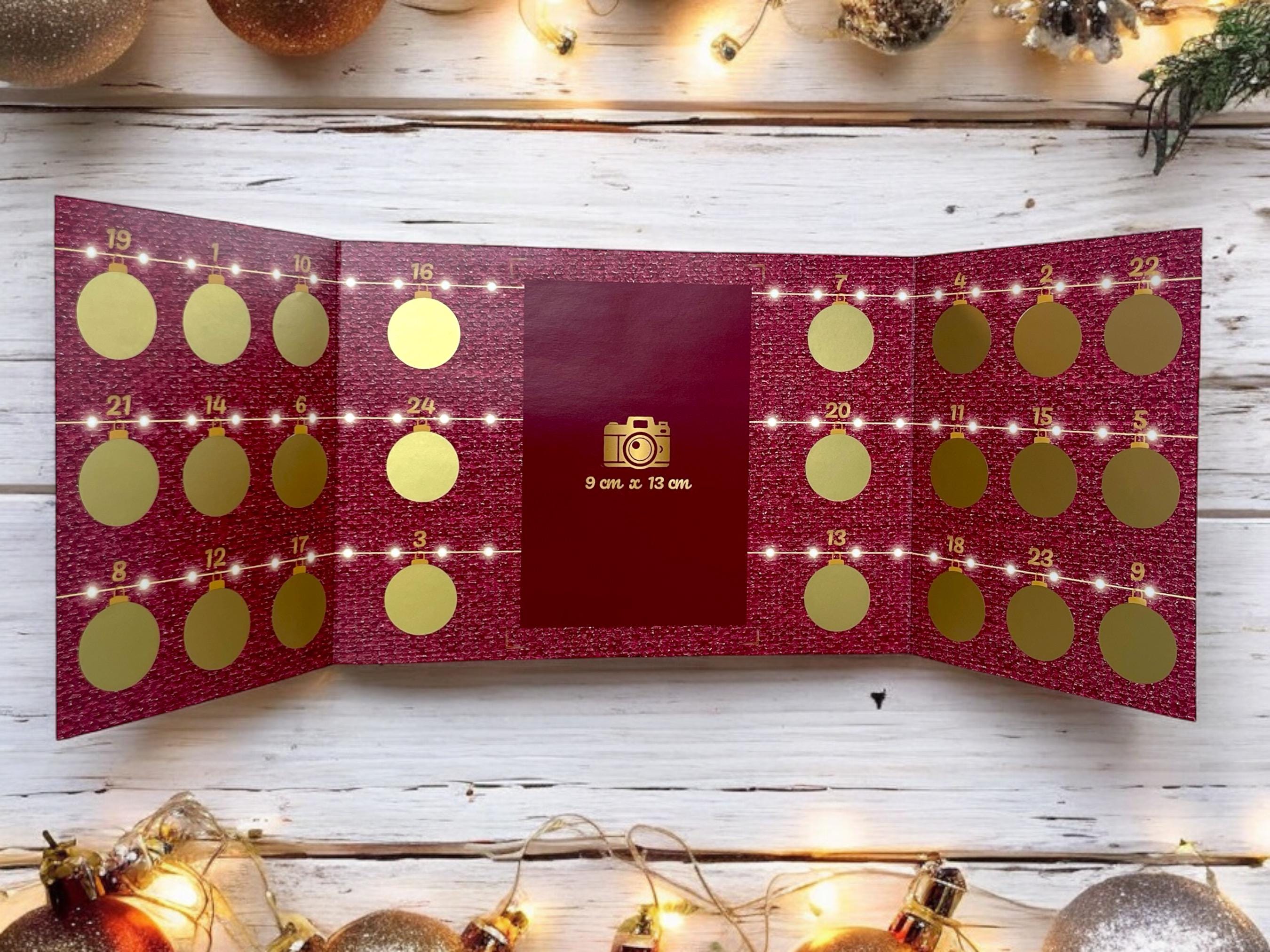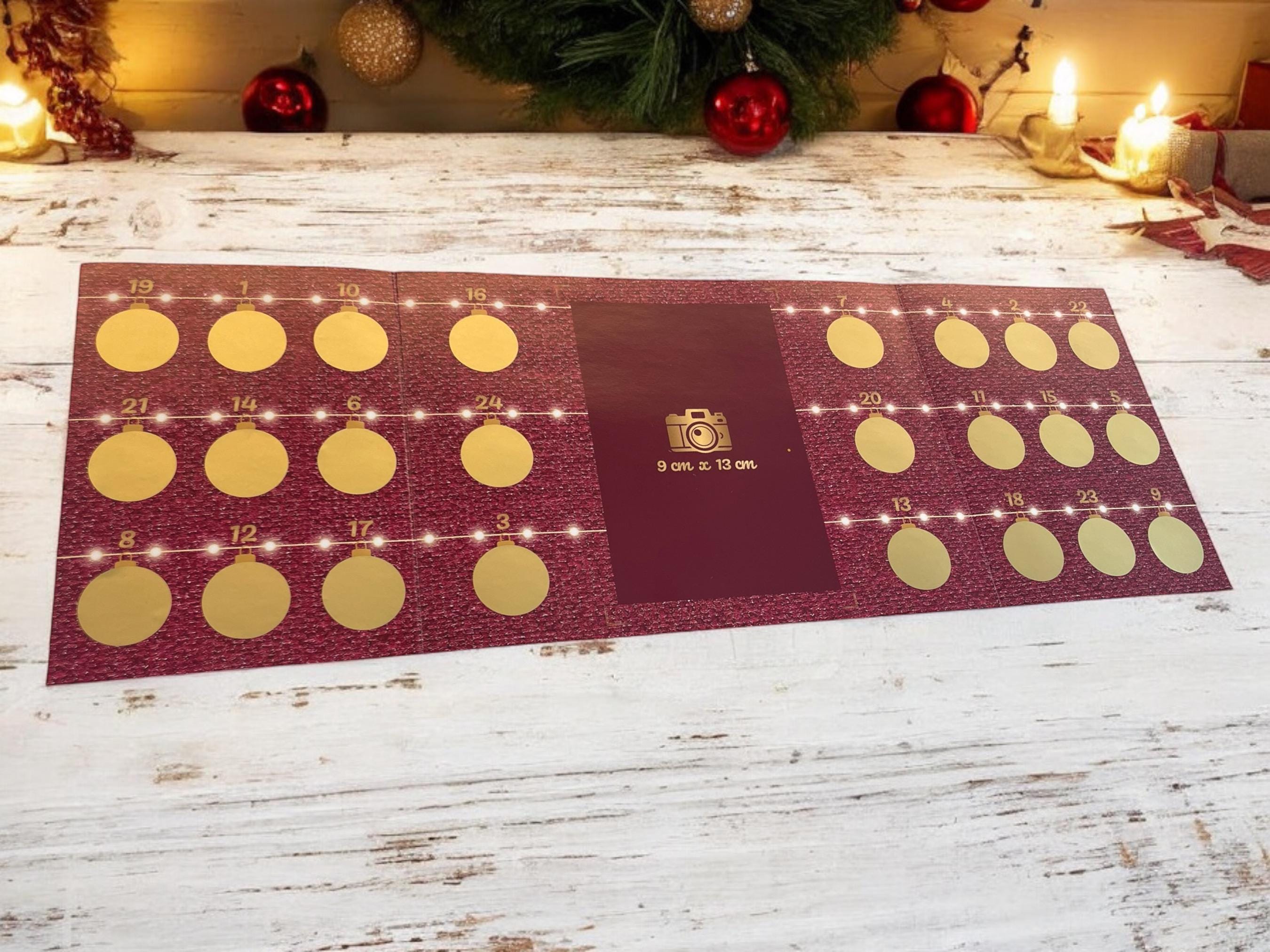 Um den Adventskalender noch persönlicher zu machen, kannst du zusätzlich ein Foto von euch oder besonderen Momenten einkleben, was diesen Adventskalender zu einem einzigartigen und emotionalen Geschenk macht. Der selbst gestaltbare Rubbeladventskalender ist die perfekte Geschenkidee für deinen Partner, Freunde, Familie oder jeden, dem du in der Adventszeit eine Freude bereiten möchtest.